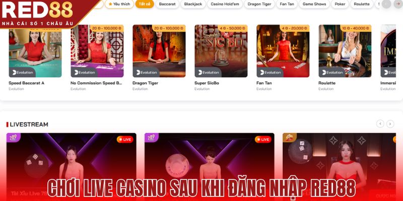 Live casino Red88 mở ra không gian cá cược sang trọng, đẳng cấp từ các studio nổi tiếng trên thế giới. Tại đây, bạn có cơ hội kiếm tiền hấp dẫn cùng các siêu phẩm như Baccarat, Sicbo, Poker, Roulette,… Những sản phẩm này đều sở hữu chất lượng hoàn hảo được phát hành bởi đơn vị cung ứng nổi tiếng như Evolution, Vivo, DG, Ezugi,…