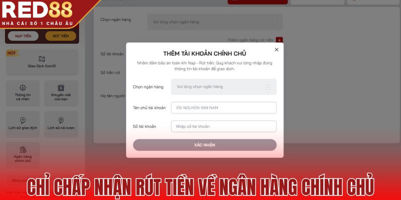 Chỉ rút tiền Red88 qua ngân hàng chính chủ