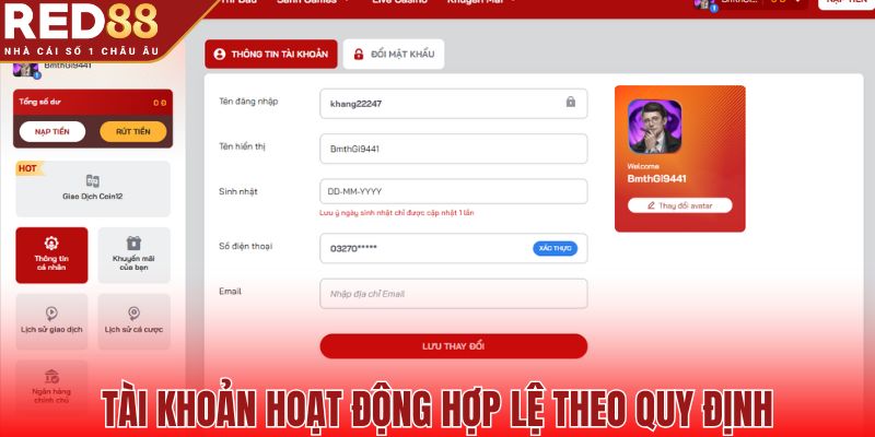 Yêu cầu rút tiền Red88 chỉ được xét duyệt khi tài khoản hội viên hợp lệ, hoạt động theo đúng quy định của nhà cái: